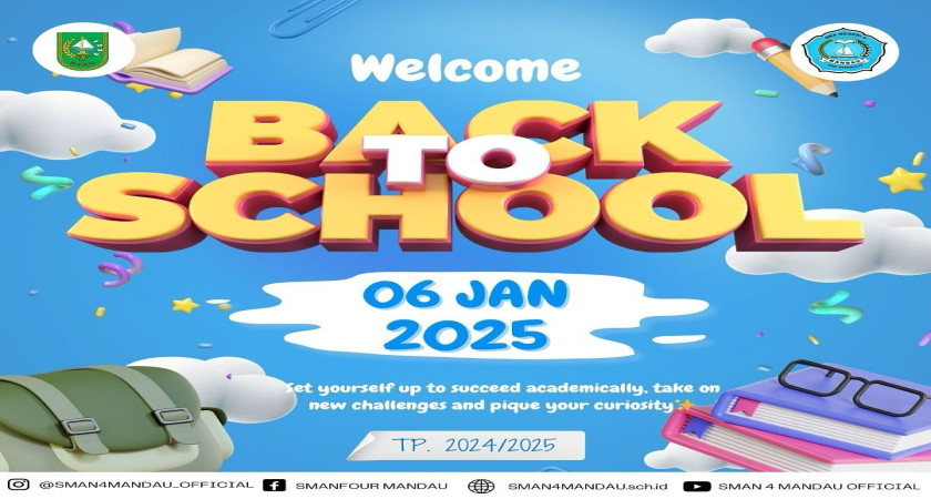 SMA Negeri 4 Mandau mengucapkan selamat hari raya idul fitri 1446 H. Taqabbalallahu minna wa minkum taqabbal yaa kariim, wa ja’alanallahu wa iyyakum minal ‘aidin wal faizin